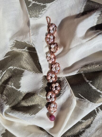 Bracciale molto elegante, tempestato di luminosi cristalli e lavorato con filato gioiello