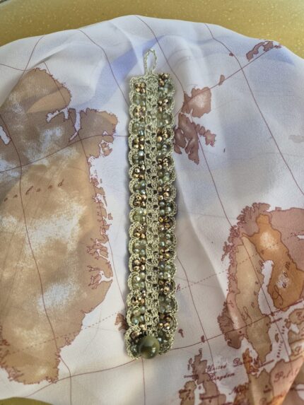 Bracciale realizzato con intreccio di cristalli con perle, da abbinare al collier Libellula e agli orecchini