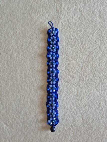 bracciale lavorato ad uncinetto con filato gioiello verde chiaro e cristalli molto luminosi, perfetto per dare luce al tuo look
